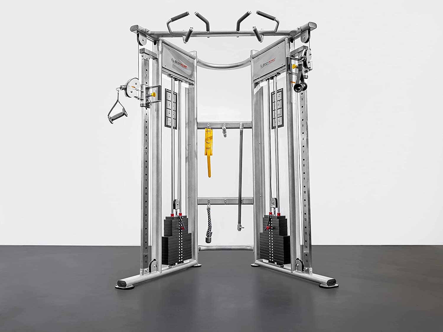 BodyKore Home Gym Package for Men and Women - Commercial Squat Rack, Functional Trainer, 5-50lb Rubber Hex Dumbbell Set, Adjustable Exercise and Training Equipment, 300lb Weight Set