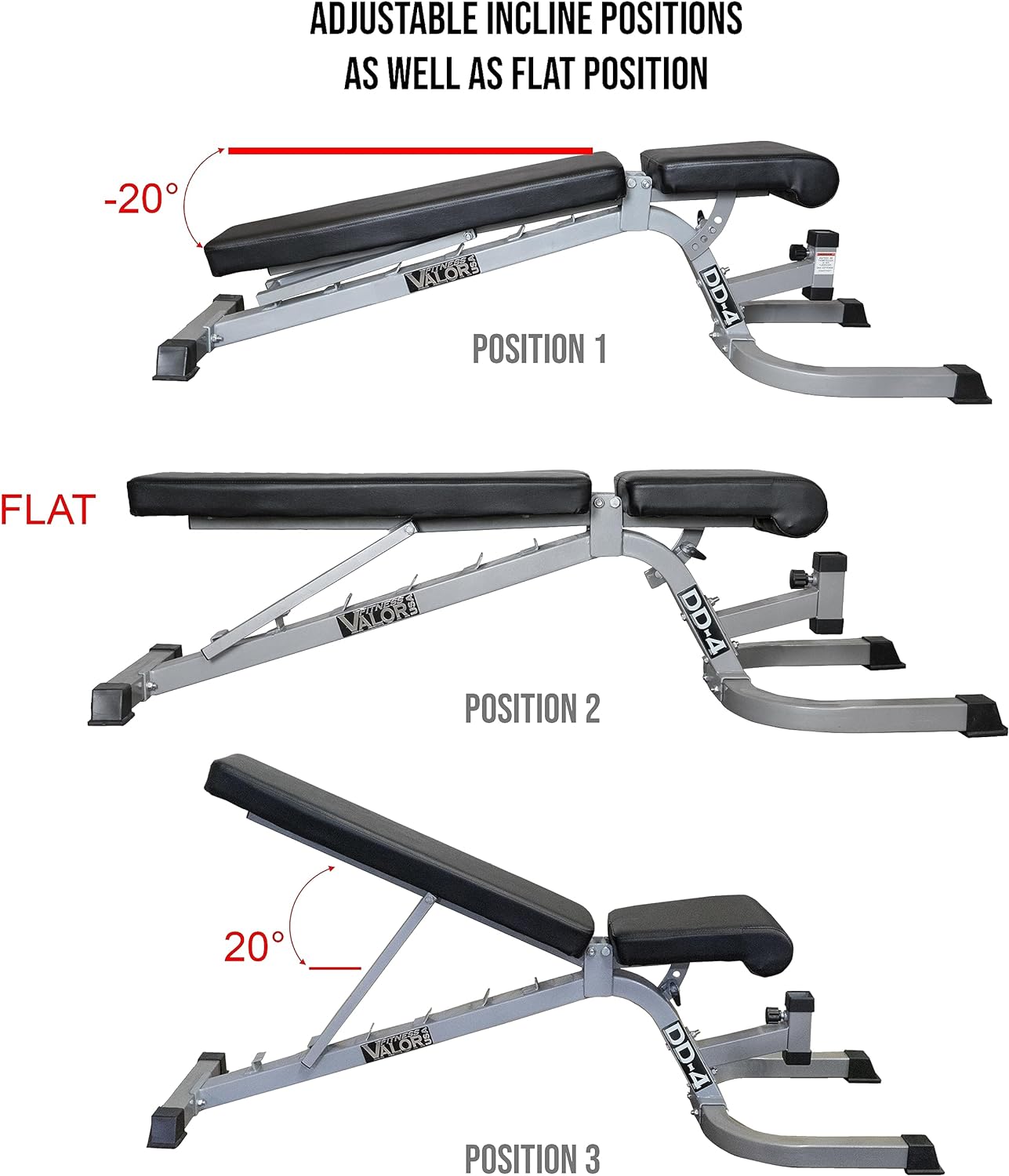 Valor Fitness Adjustable Weight Bench Flat, Incline, Decline Bench Press with Leg Support – Great Workout Benches for Home