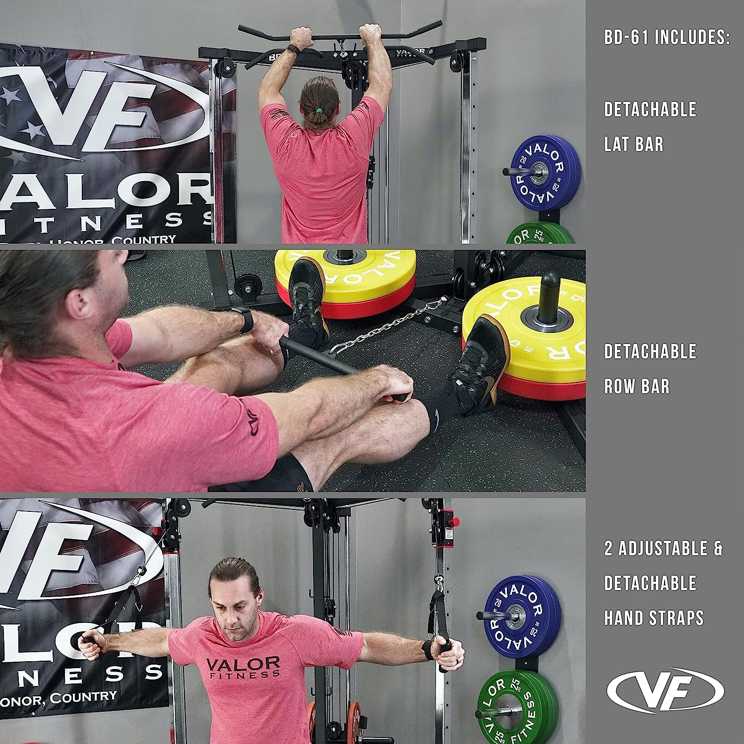 Valor Fitness BD-61 Cable Machine Power Machine - 17 Adjustable Positions with Pull Up Bars, Max Weight 200 lb. Plate Loaded Pulley System for Home Gym Workout - Handles Included
